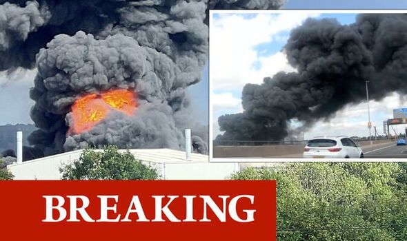 A MASSIVE fire in the West Midlands has belched out vast clouds of smoke across the M5 and visible from the Welsh border, with flames reaching an estimated 100 feet.