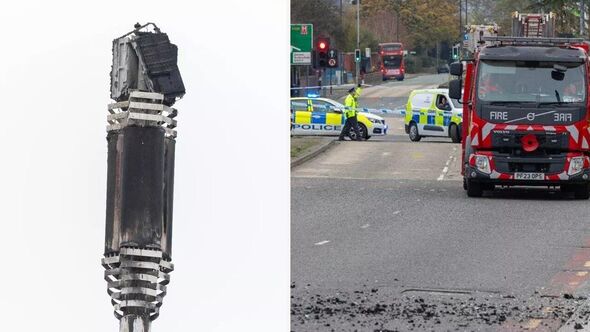 The telecommunications tower explosion left roads closed and debris littering the area as emergency services raced to the scene.