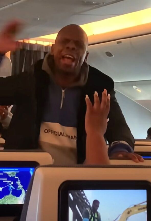 Footage shows a man stood on his seat and preaching to the rest of the passengers on the plane.
