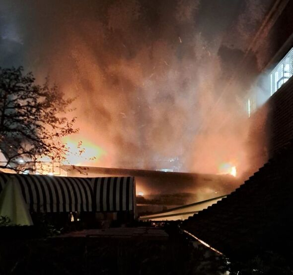 Part of the rooftop bar area of the nine storey building was alight, firefighters said.