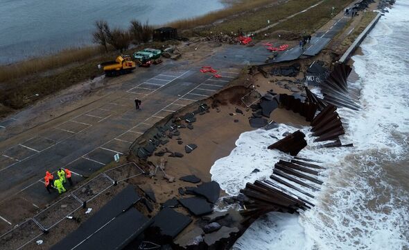 A stretch of road leading to a seaside village fell into the sea, cutting off locals.