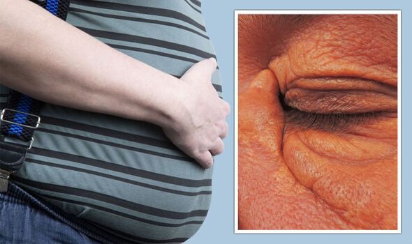 Xanthelasmas associated with fatty liver disease typically emerge on the skin around the nose and eyelids.