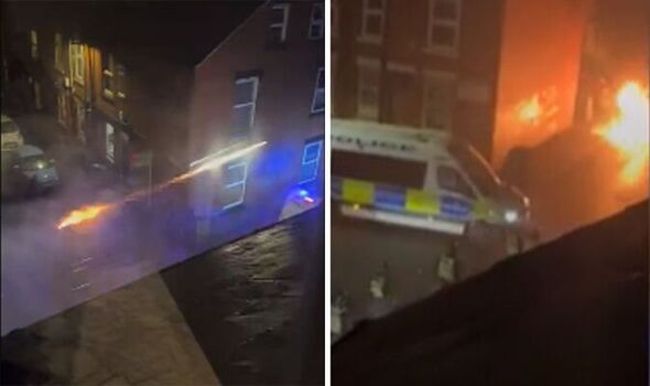 Riot officers were bombarded with fireworks as they ran through residential streets in Hyde Park last night.