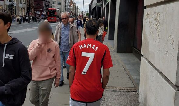 A Jewish man has spoke of his disgust after spotting a football supporter wearing a Manchester United shirt with HAMAS printed on the back.
