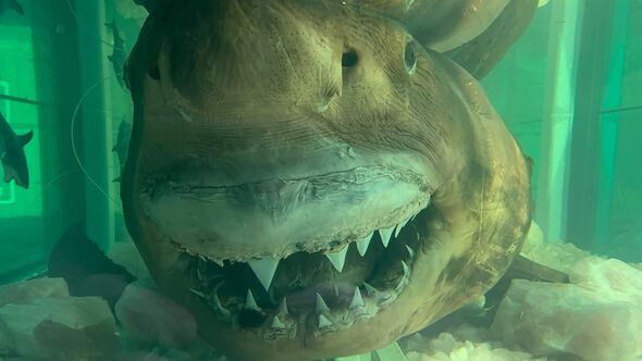 A video has surfaced taken inside an abandoned building that housed the preserved body of an entire 16-foot-long great white shark.