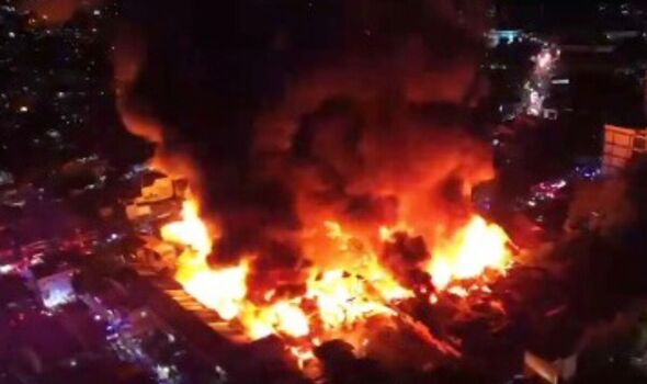Dramatic video shows the massive fire burning, with huge flames rising into the night sky.