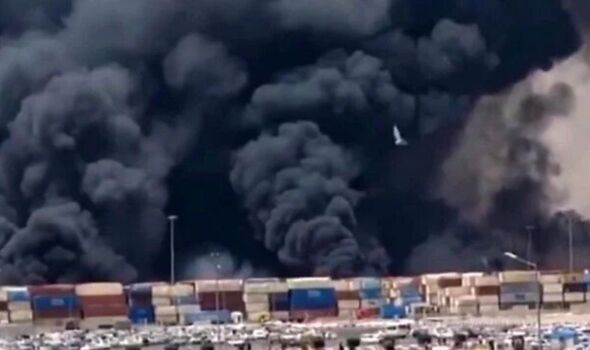 A huge cloud of smoke billowed into the sky after the explosion which State TV has blamed on “negligence”.