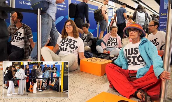 Just Stop Oil activists staged a protest at Gatwick Airport on Monday morning.