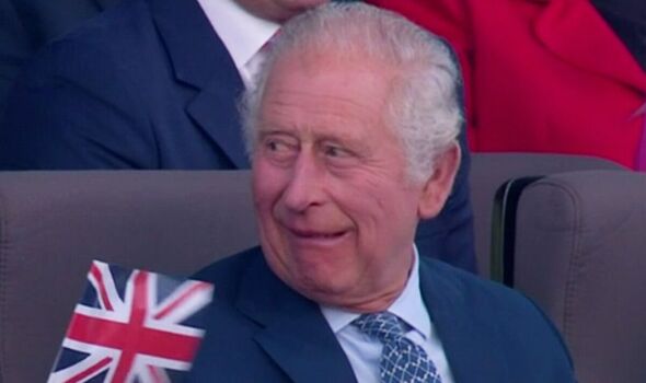 King Charles III was on the receiving end of a joke during his Coronation Concert which he was caught laughing at before pulling a face at his wife Queen Camilla.