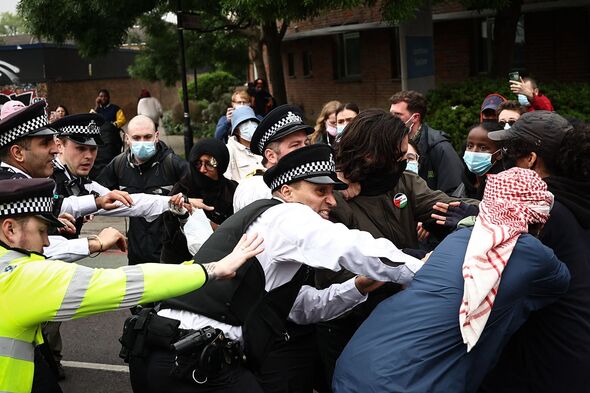 At least 30 protesters have descended on New Kent Road in south London this morning to surround the bus taking illegal migrants to the barge.