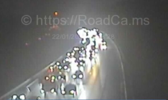 Pictures from the impacted stretch of the busy UK motorway show miles of traffic during the busy evening rush hour.