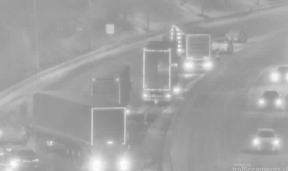 Two lanes were shut as heavy snow battered the area.