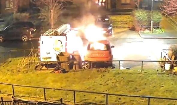 Home » Moment van is ‘burnt to a crisp’ as flames erupt in UK city – police probe ‘wilful’ fires