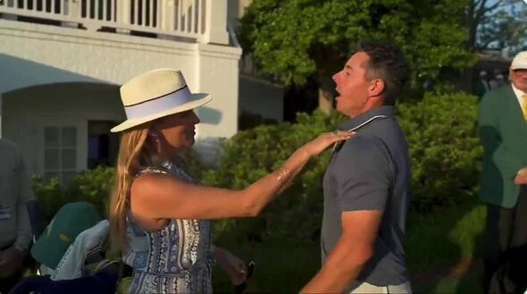 Rory McIlroy was seen sharing an emotional hug with a woman at the end of his championship walk after winning the Masters to complete a career Grand Slam