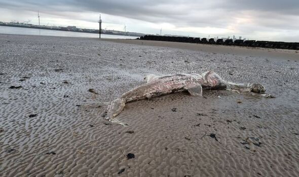 A runner on a beach in Liverpool stumbled upon the body of a sea monster, which turned out to be an elusive creature.