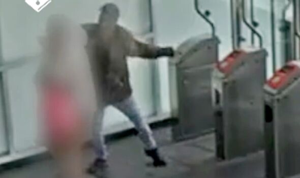 The woman was hit hard over of the head by the man who followed her through the ticket gates.