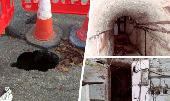 A sinkhole which opened on a road may be linked to miles of secret haunted tunnels under a city, locals claim.