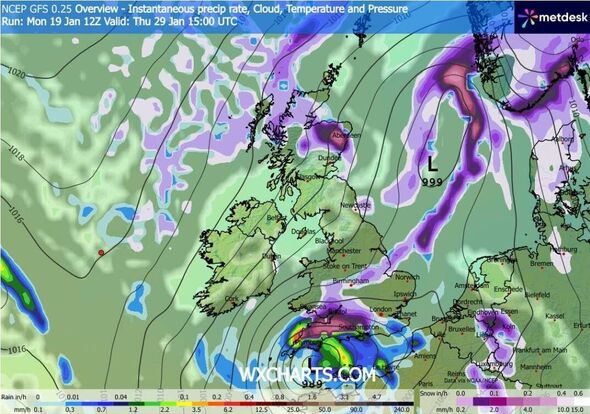 Weather maps suggest nine straight days of snow chaos.