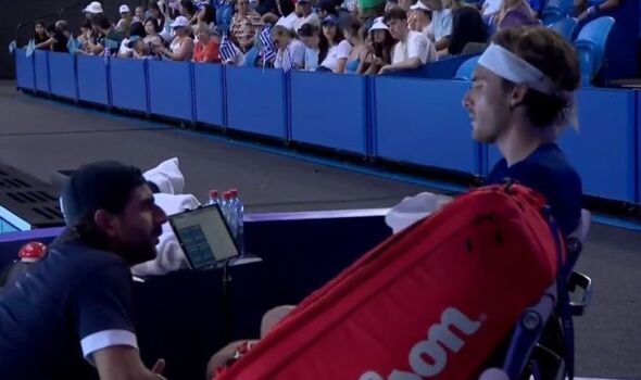Stefanos Tsitsipas was far from happy during his match against Alexander Shevchenko.