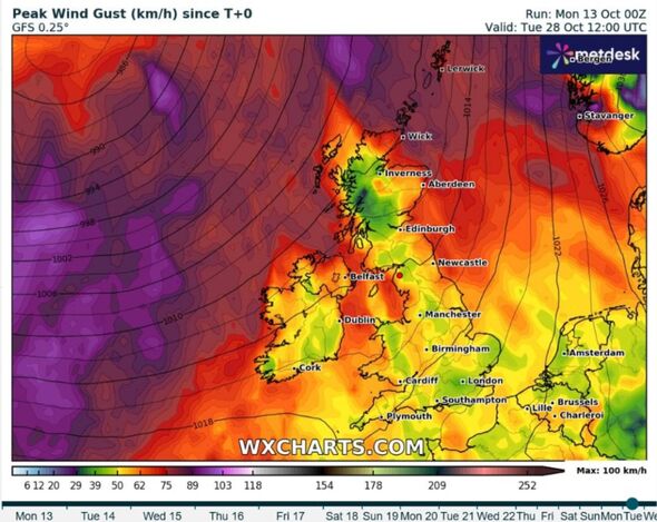 Blasting in from the Atlantic, the ominous-looking new weather front later this month is set to bring a double nightmare of strong wind and heavy rain.
