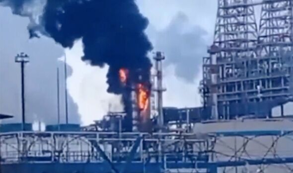 Video footage shows the huge oil facility in Russia up in flames.