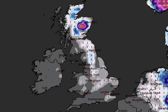 Snow is due to blanket large parts of Britain next month, maps have suggested.