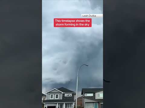 Watch as a tornado causes huge hail stones to drop in Alberta, Canada. A severe thunderstorm produced the tornado, according to local weather officials.