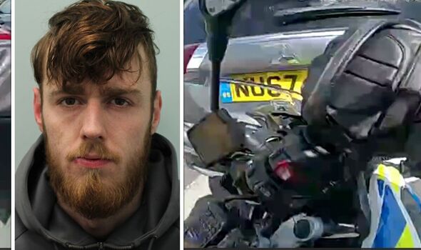 Watch moment ‘dangerous’ man rams car into police officer’s motorcycle before being jailed