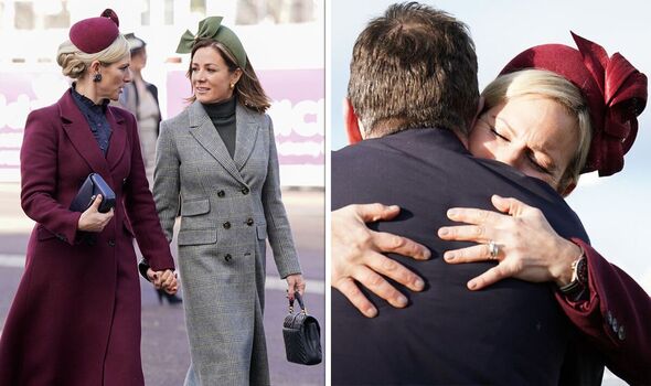 Zara Tindall was seen with her husband, Mike Tindall, at the Cheltenham Festival today, March 14. The couple is often spotted holding hands and demonstrating other forms of PDA, but today, Zara seemed to show affection towards a number of people, including Mike.